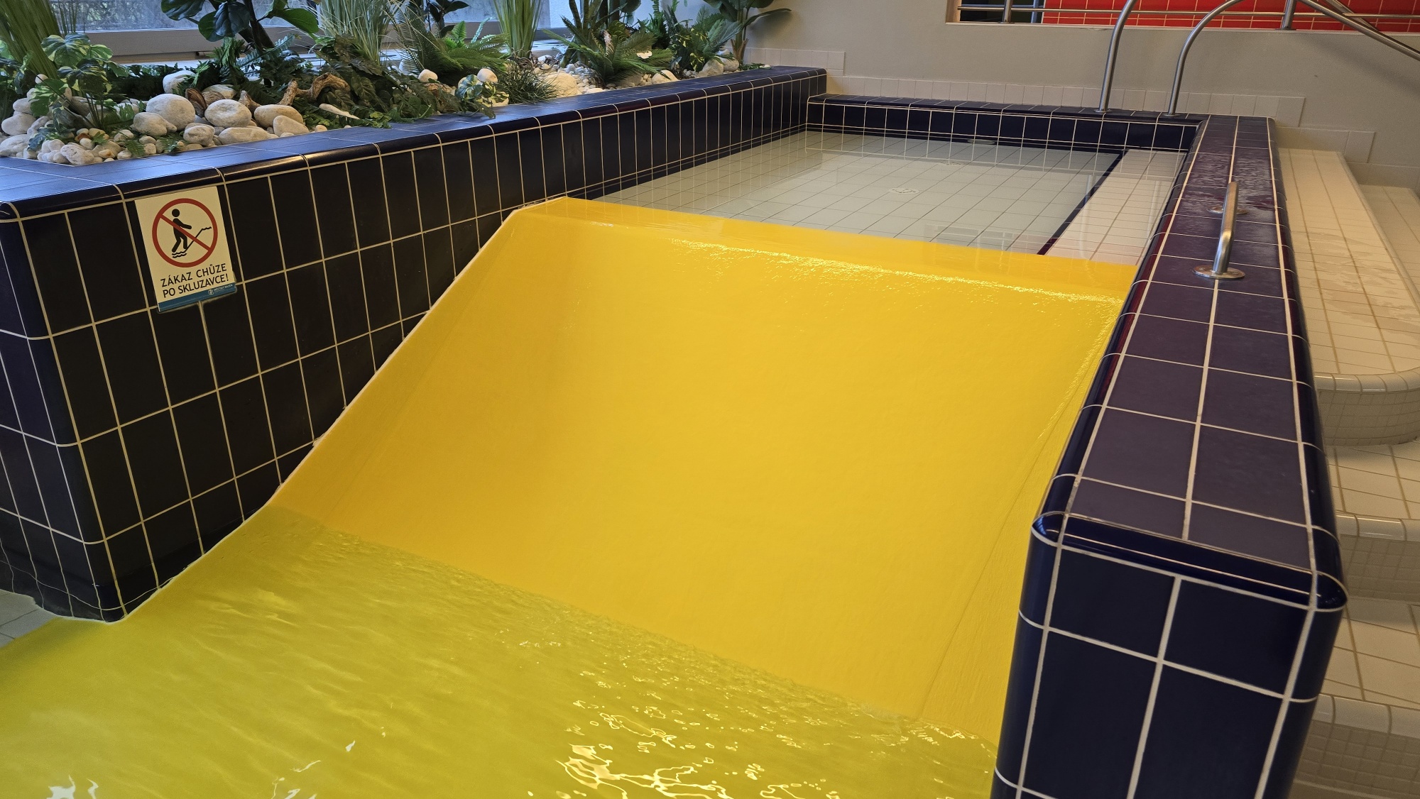 Vážení návštěvníci, s radostí vám oznamujeme, že jsme opět plně zpřístupnili dětské brouzdaliště se žlutou skluzavkou v ZÓNĚ 2. Skluzavka je vyhotovena pomocí kompozitní technologie POLYLAM a CHEMOLAM, je ze stříkaného sklolaminátu a má dlouhodobou trvanlivost. Skluzavka je odolná a bezpečná, skladba sklolaminátu má 5 vrstev. Tak přijďte se svými dětmi k nám a vyzkoušejte tuto novou skluzavku, užijete si plno zábavy, těšíme se na vaší návštěvu.